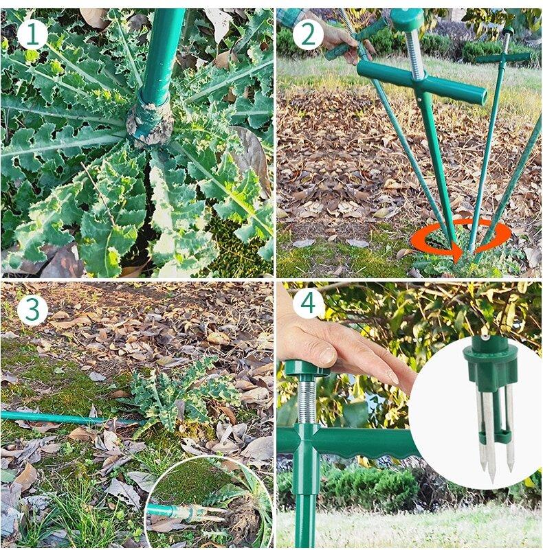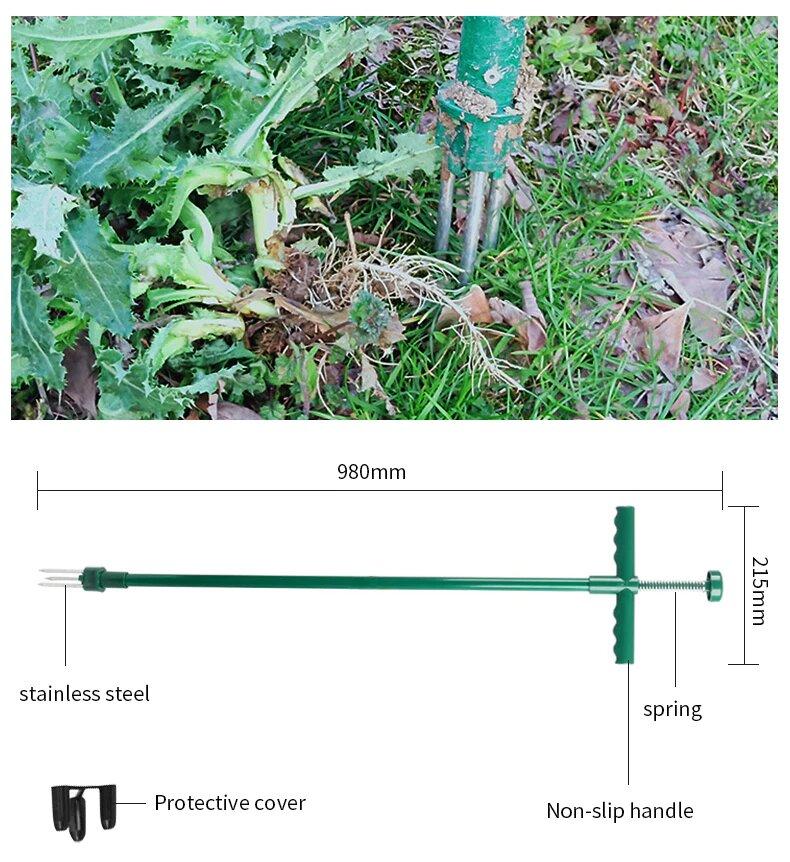 - SPRINGED INNER ROD - Connected directly to the prongs for easy ejection of the pulled-out weeds.